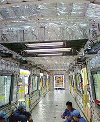 在側(cè)壁和頂棚的應(yīng)用事例中,Greencos綠寰宇多型號(hào)吸聲隔熱泡綿板的低熱能傳導(dǎo)性顯示出高效隔熱的性能。例如,空調(diào)載客車(chē)的運(yùn)行費(fèi)用因此可以得到很大程度的降低。
